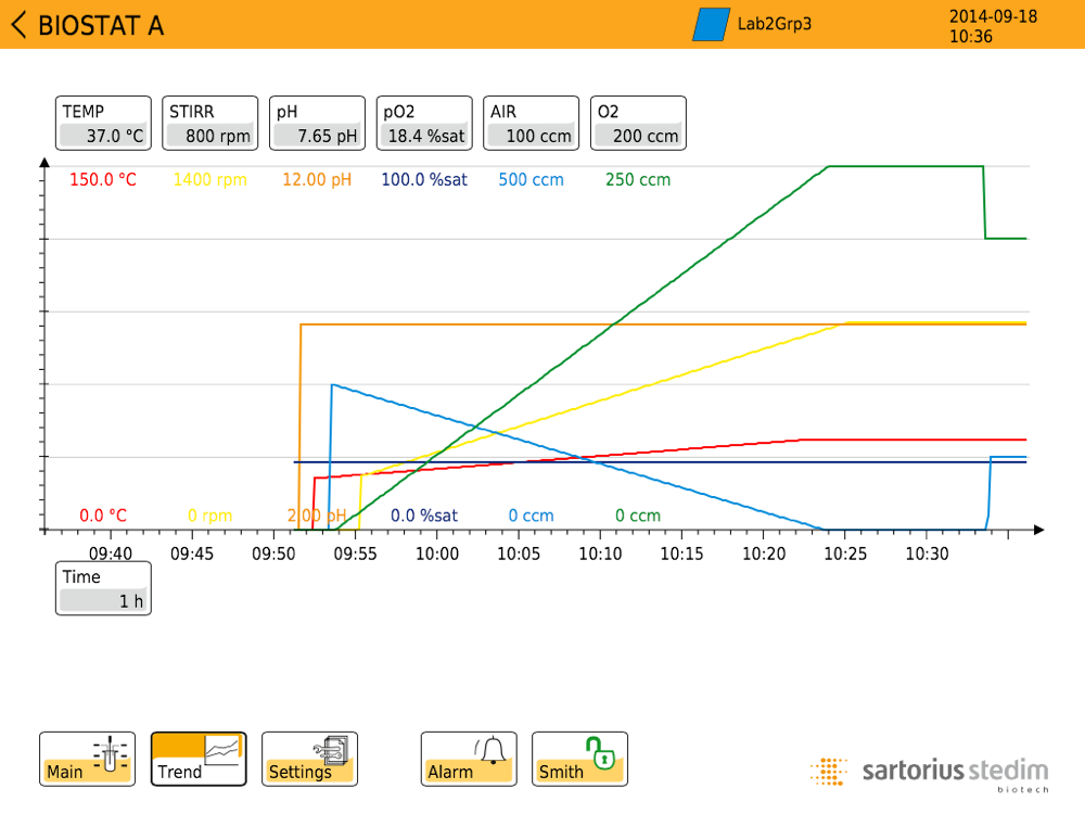 With the BIOSTAT® A app you get full monitoring and control functionality for your BIOSTAT® A. Thanks to the intuitive user interface, operating the BIOSTAT® A is ideal for beginners, reduces operating errors and speeds up training. Operation using a tablet or smartphone is a mode offered in the Advanced package and enables you to monitor and control the BIOSTAT® A on the move – in the laboratory, in the office or even at home.