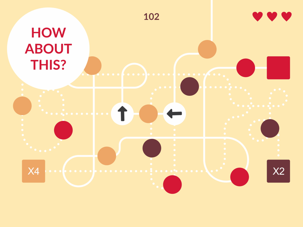 This Way is like a games about trains, but it is very sketchy. It’s like to choose the right path for the train by throwing railroads switch. Circles is your trains and railways is lines (path) leading to the square (the station where train stops). You able control only path direction by tapping arrows button. Warning! This way is game uses your concentration, reaction and reflexes skills.