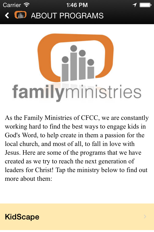 This mobile application is designed to be a tool to keep parents informed on what their kids are learning each week, to provide resources that go along with the child's curriculum, and to keep families informed of upcoming events.
