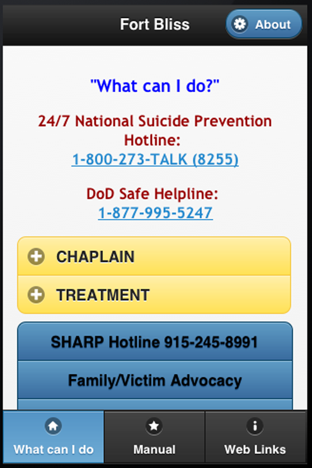 This app is to support the TRADOC Sexual Harassment/Assault Response and Prevention (SHARP) campaign plan which is designed to reduce with the goal of eliminating sexual harassment and sexual assault from our ranks. This is one of many initiatives developed to ensure that every member of our TRADOC family serves in a safe environment, free from sexual harassment and sexual assault.