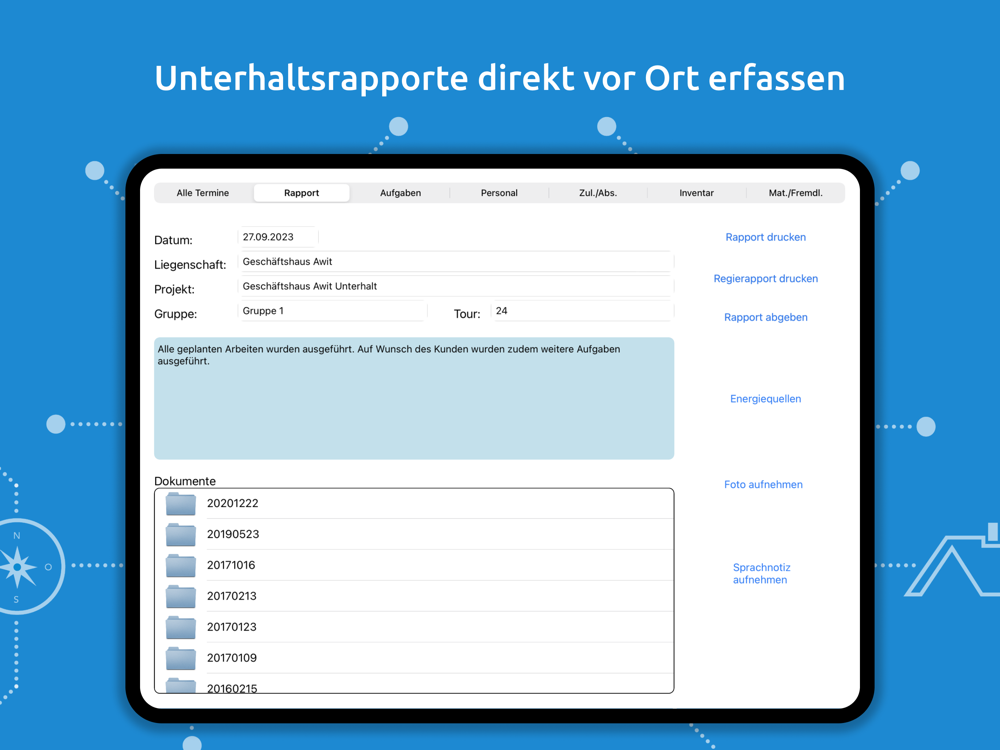 Mobiles Rapportieren von Service- und Unterhaltsarbeiten. Das intuitive App ist in die ERP-Software von SORBA eingebunden und ist speziell auf die Leistungserfassung ausgelegt.