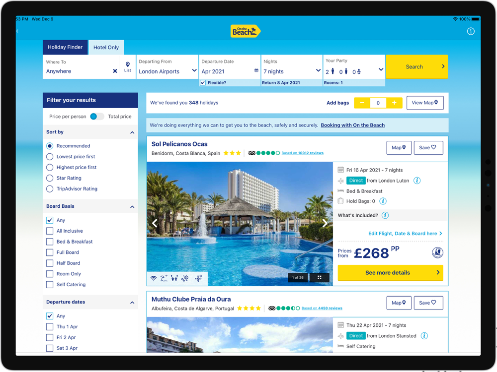 Book, customise and jet off on your perfect beach holiday today with the On the Beach app. Our app brings you the best cheap deals, tailored for you. Your next beach holiday is just a tap away.