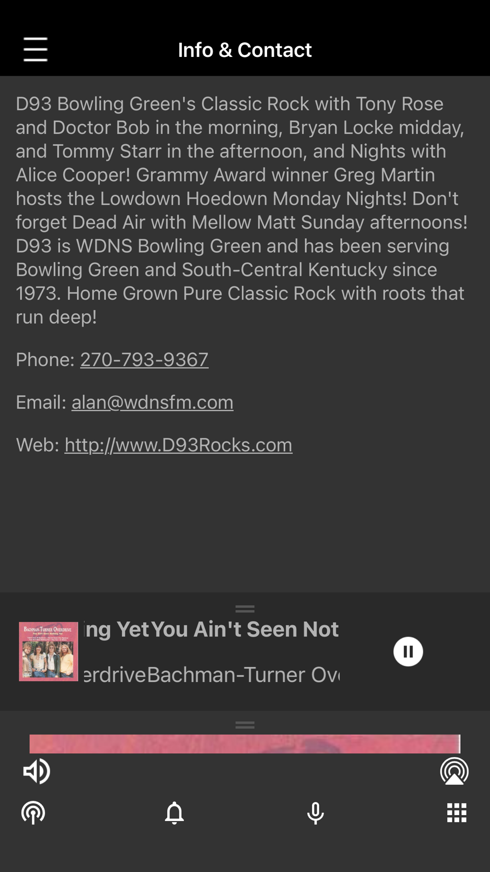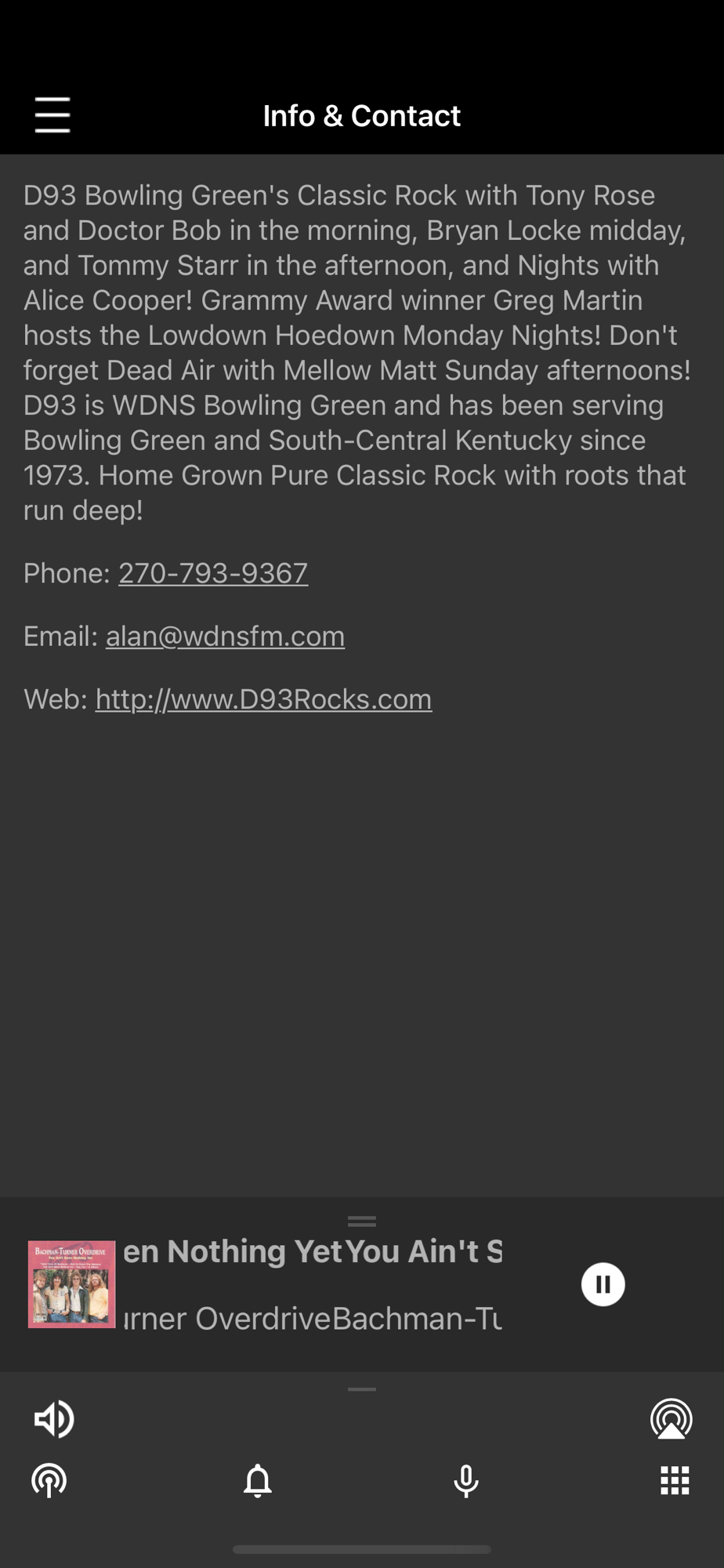 D93 Bowling Green's Classic Rock with Tony Rose and Doctor Bob in the morning, Bryan Locke midday, and Tommy Starr in the afternoon, and Nights with Alice Cooper! Grammy Award winner Greg Martin hosts the Lowdown Hoedown Monday Nights! Don't forget Dead Air with Mellow Matt Sunday afternoons!