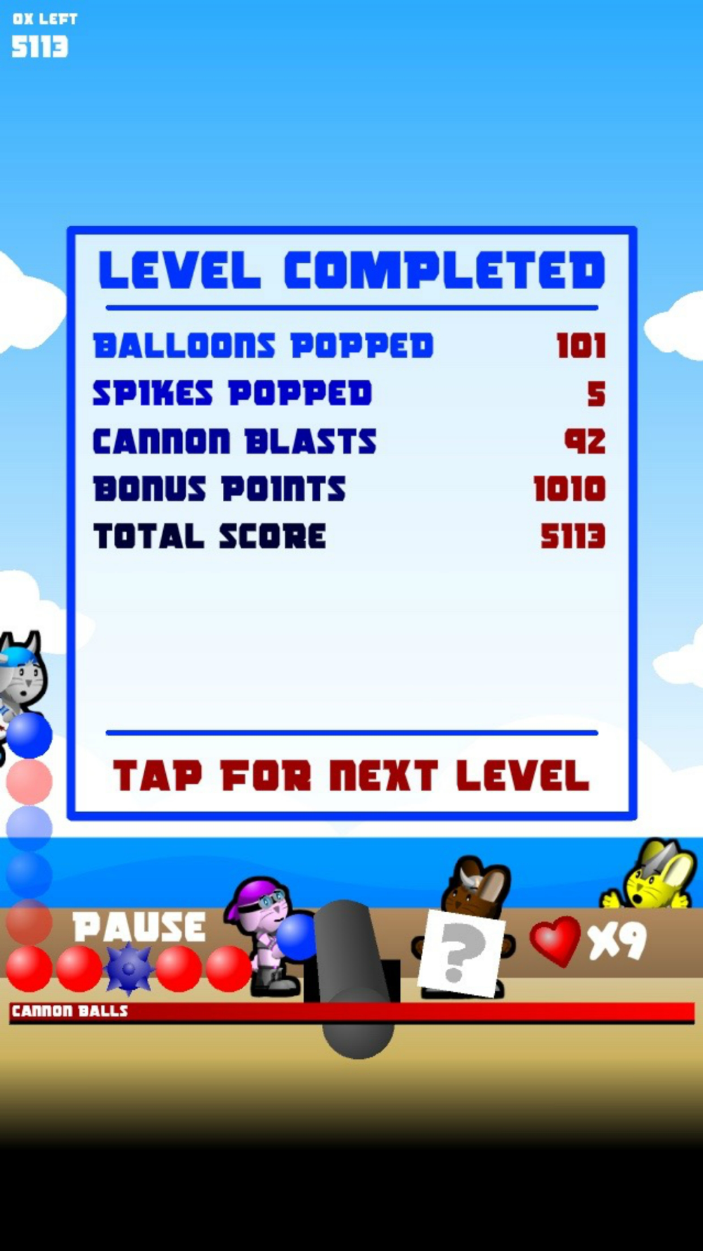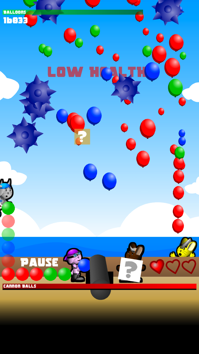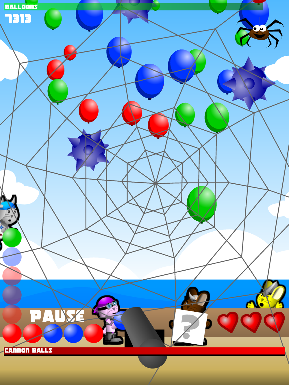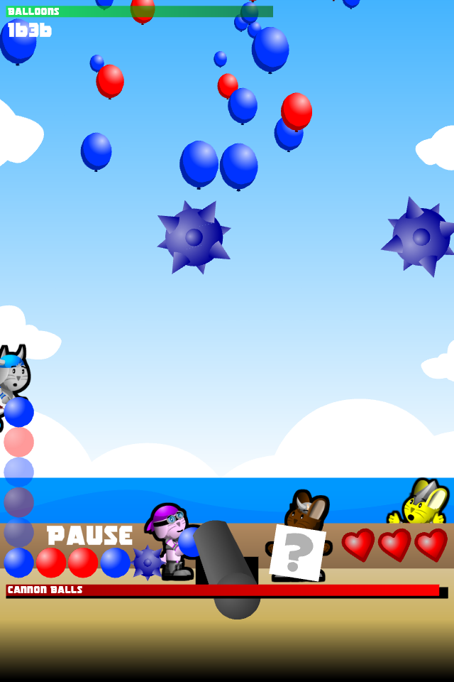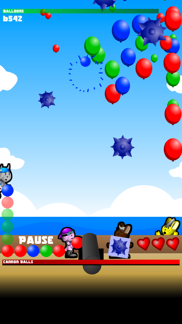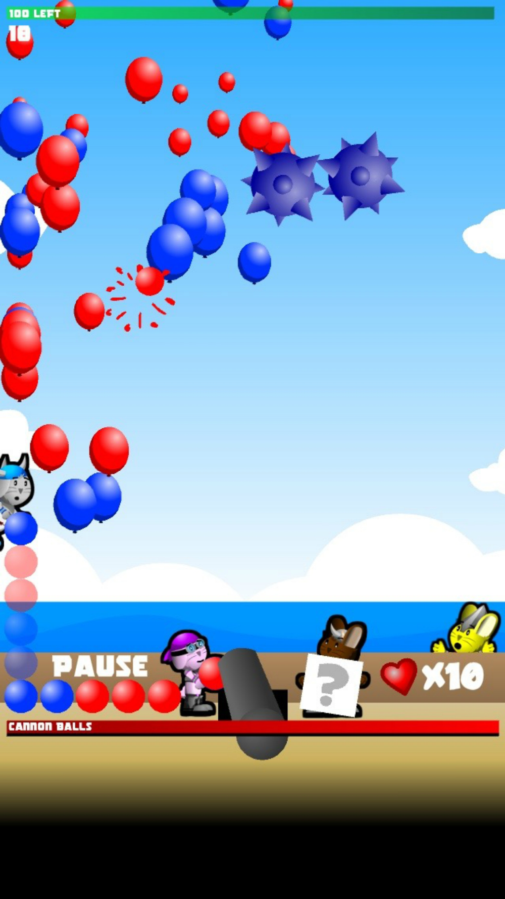 The Viking Bunnies are back and this time they are ready to pop an armada of balloons for great prizes! (Apparenty Captain Fuzzy believes these balloons to be monsters ... so just go with it.) Using their trusty cannon aboard The Bunny Ship, blast the balloons overhead as they come your way with an array of colorful cannonballs. Just don't let the balloons (as well as dynomite, fireballs, and spike balloons) damage The Bunny Ship because nobody wants that. How many balloons can you pop? Is there gold in those balloons?