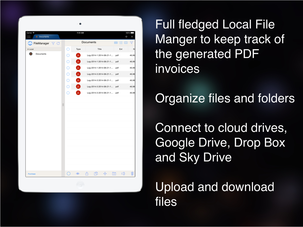 •Create folders organize your business documents like sales invoices, purchase orders, expense receipts, inventory reports,etc.,
