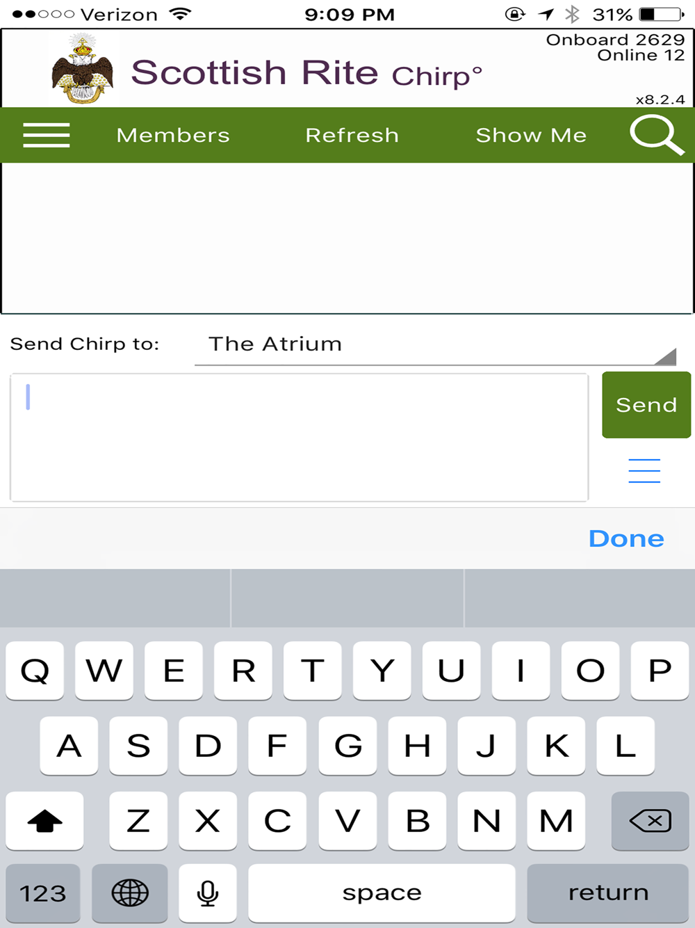 The application enables Scottish Rite Masons to quickly and conveniently communicate and interact. Although SR Chirp is similar to text messaging in some ways, because SR Chirp is usable only by Scottish Rite members, it becomes simple to separate communications with brothers from the sometimes overwhelming number of messaging that are part of our personal and business lives.