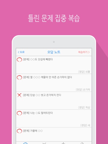 틀린 문제, 중요 문제는 따로 정리할 수 있고 언제든 복습할 수 있습니다.