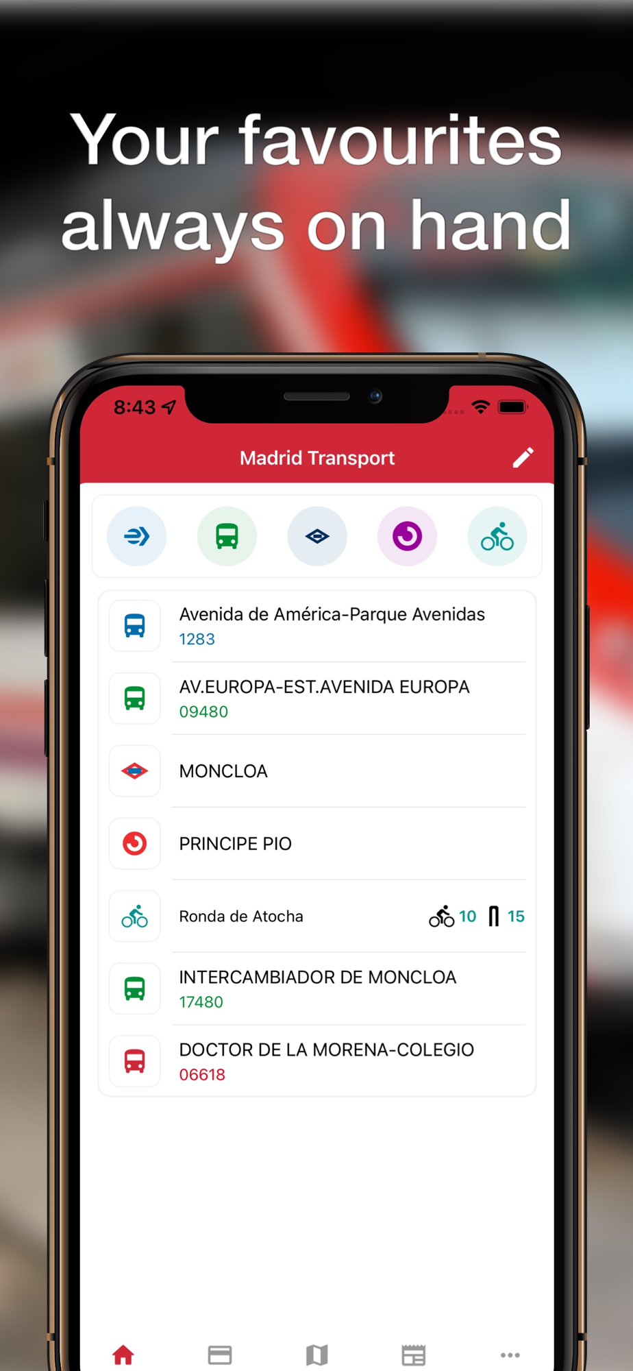 · Live time arrivals for EMT and Intercity buses, Metro, Cercanías and Metro Ligero.