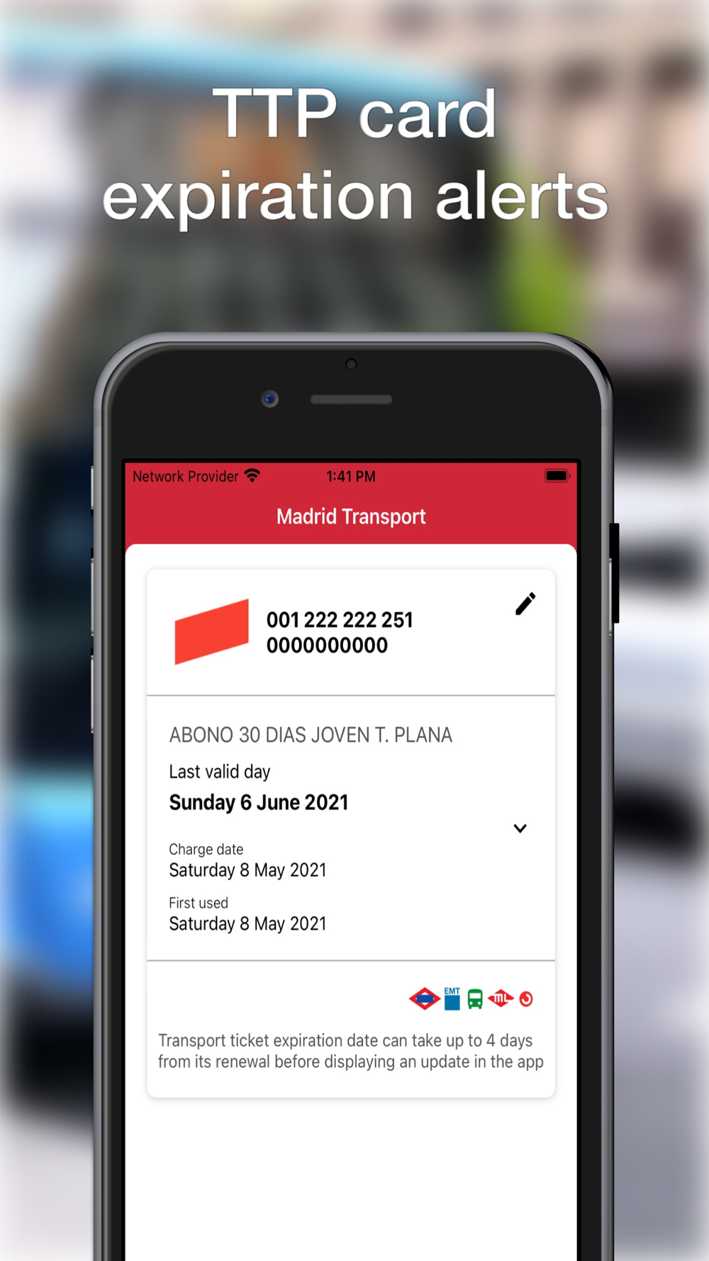 Madrid Transport lets you know the exact arrival times for all public transort services in Madrid, including EMT buses, Intercity buses, Metro, Cercanías and Metro Ligero. You can easily find your stop in the map or using the stop code you can find in the stop itself. You can also check your TTP card expiration date and receive notifications when it is about to expire.