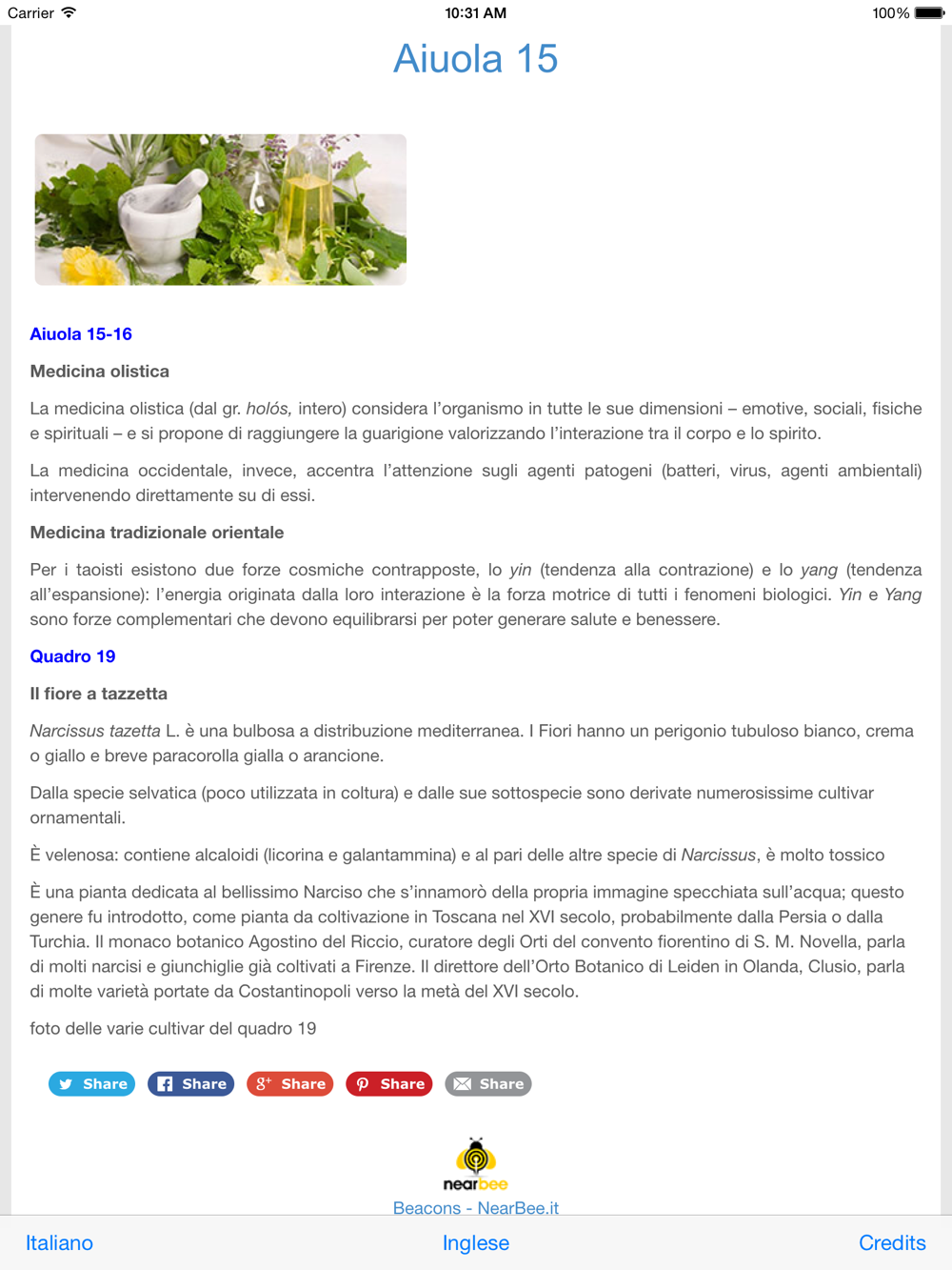 This app only works near the beacons NearBee. Approach the markers Nearbee and get contextual informations