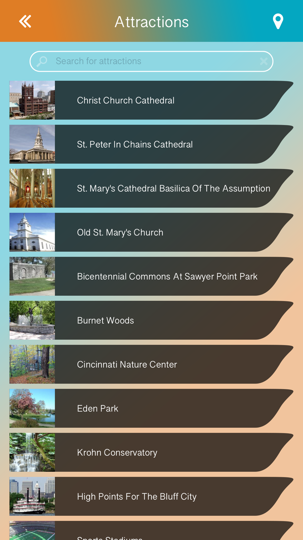Discover what's on and places to visit in Cincinnati with our new cool app. Your guide to top attractions, shopping malls / locations, finding hotels, directions to hotels & Bars, Restaurants. An all-in-one app for all the local attractions.