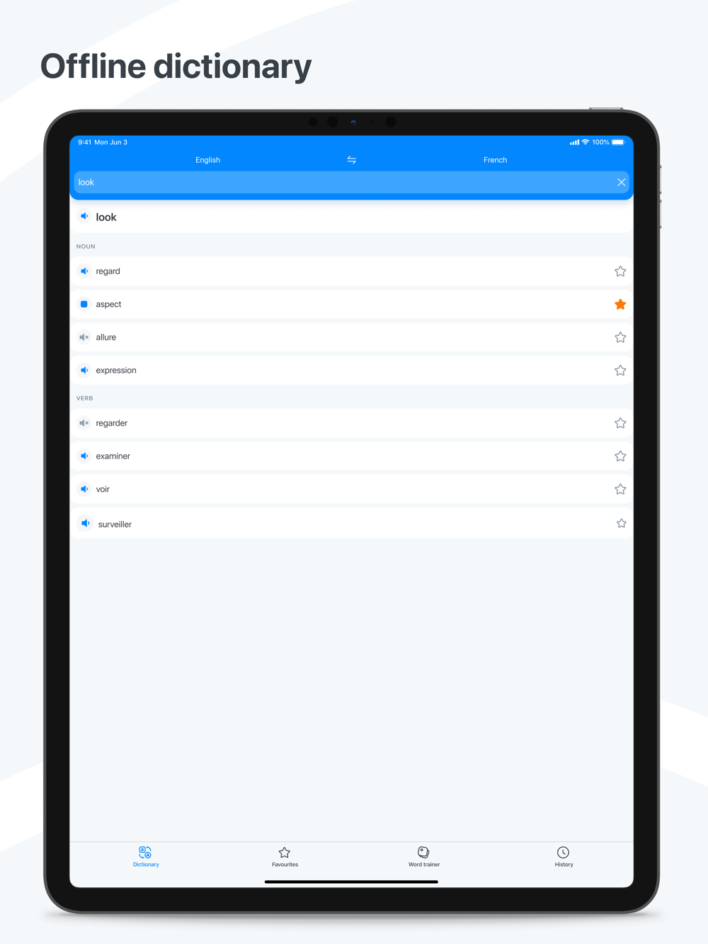 Simple, fast, convenient French - English and English - French dictionary. The Dictionary is OFFLINE and does not require an Internet connection. The dictionary contains the vocabulary trainer. This is an easy way to learn new words.