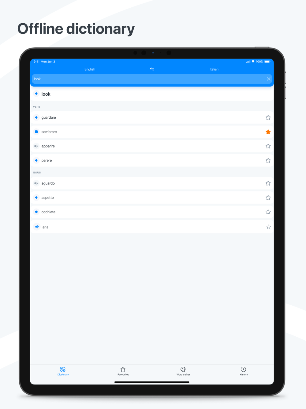 Simple, fast, convenient Italian - English and English - Italian dictionary. The Dictionary is OFFLINE and does not require an Internet connection. The dictionary contains the vocabulary trainer. This is an easy way to learn new words.