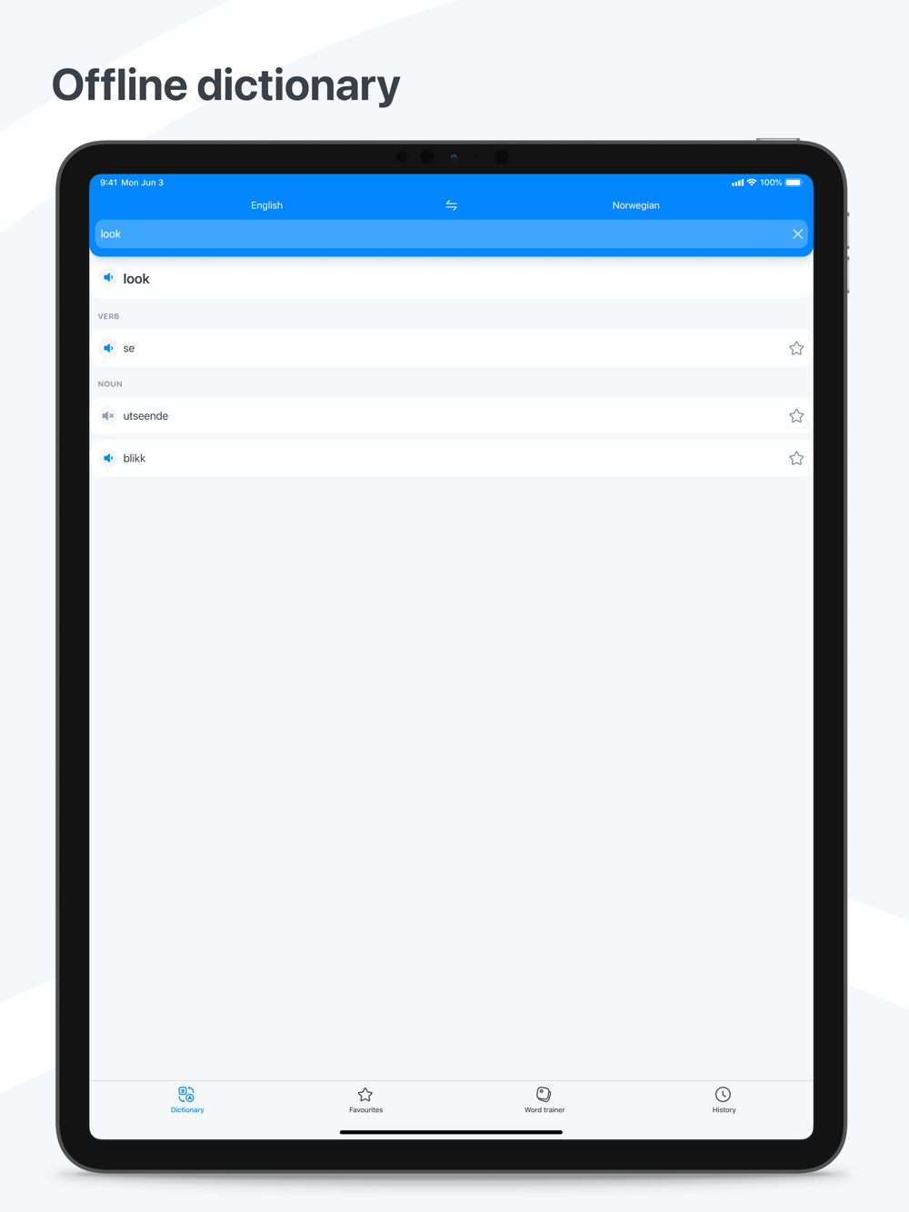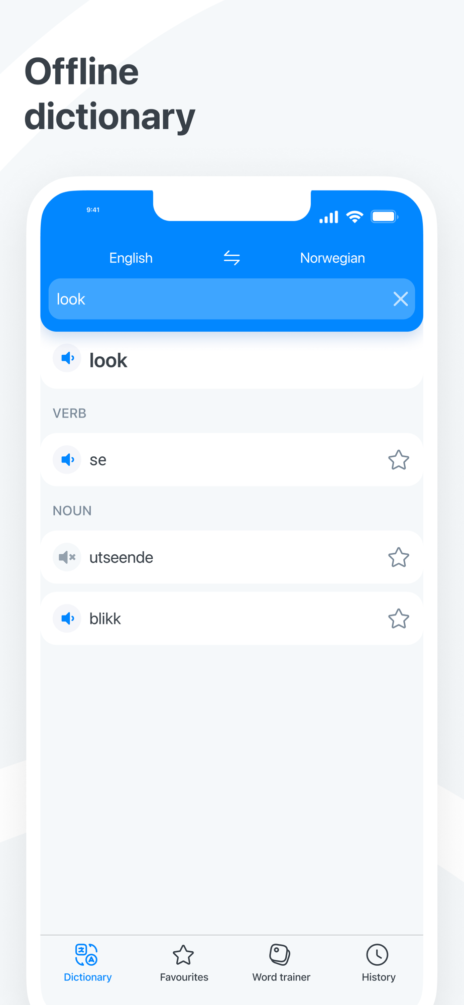 Simple, fast, convenient Norwegian - English and English - Norwegian dictionary. The Dictionary is OFFLINE and does not require an Internet connection. The dictionary contains the vocabulary trainer. This is an easy way to learn new words.
