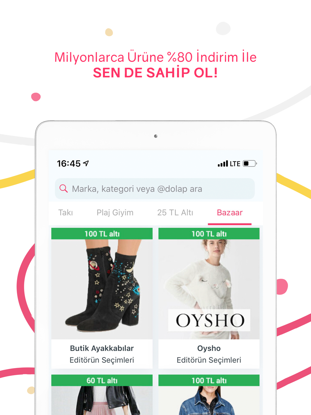 6 binden fazla markaya ait lüks ürün ModaCruz’da! Burberry, Prada, Gucci, Chanel, Louis Vuitton, Miu Miu, Fendi, Christian Dior, Stefanel, Michael Kors, Vakko, Guess, New Balance, TopShop, Gap, Levis, Aldo, İpekyol, Yargıcı, Twist, Beymen Club, Zara, Bershka, Nine West, Lacoste, Boyner, İpekyol, Twist, Nike, HM, Mango, Koton, LCW kadın, Derimod, H&M, Trendyol, Converse ve daha fazla markaya en ucuza sahip ol! Ayrıca IKEA, Karaca, Zara Home, Emsan, Taç ve daha fazla markaya ait ev yaşam ürünleri de ModaCruz'da seni bekliyor!