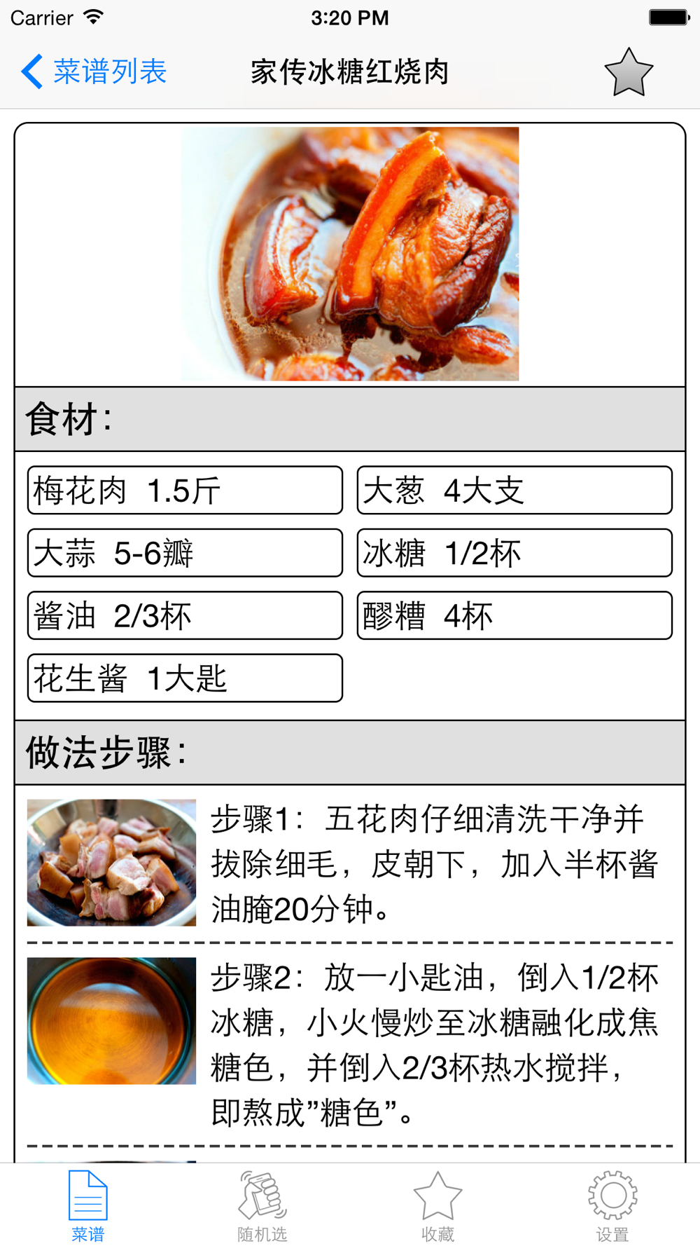 《私房菜谱大全》具有收藏功能,一键收藏。