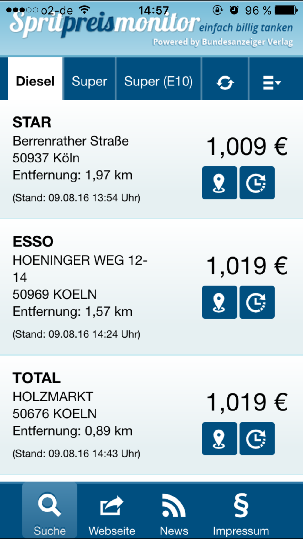 ECHTZEIT PREISE: Mit den Echtzeitdaten der Markttransparenzstelle die Preisänderungen von über 14.000 Tankstellen finden. Sie erhalten immer die günstigsten Spritpreise, egal ob Diesel, Super oder SuperE10.