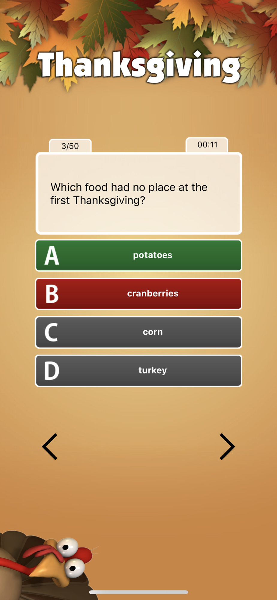 The trivia game includes interesting questions about Thanksgiving and Thanksgiving traditions. While playing this Thanksgiving trivia game you learn a lot about Thanksgiving history as well as Thanksgiving traditions in the United States and around the world.