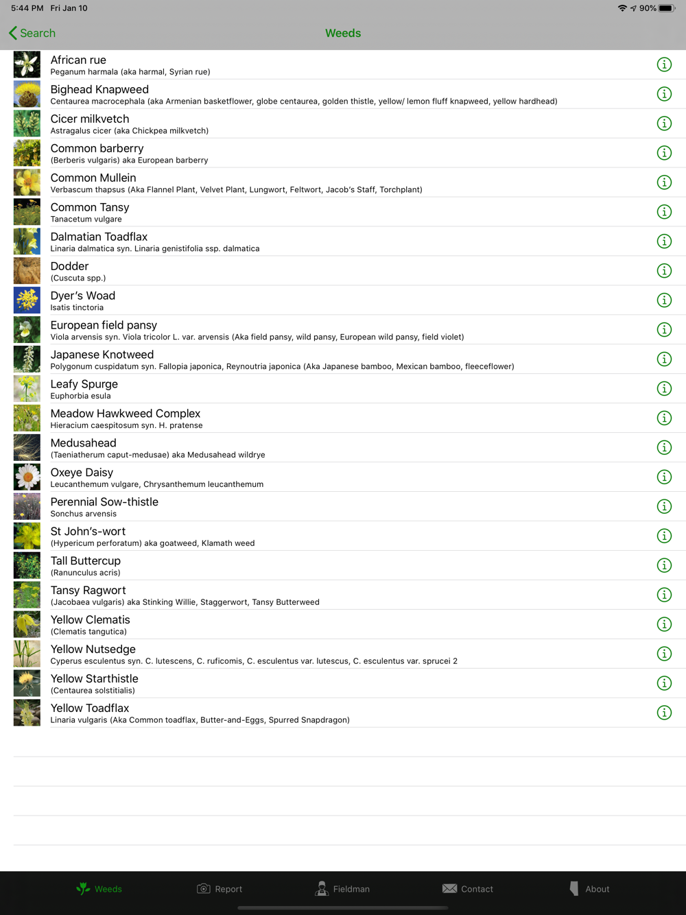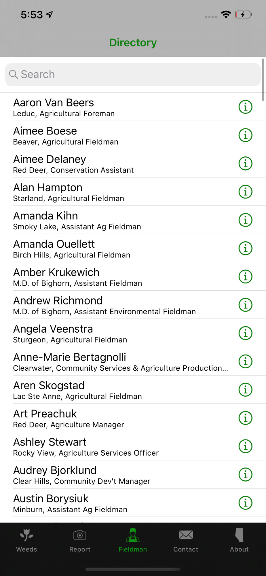 The AAAF app is a reference for prohibited noxious and noxious weeds as well as a contact database for the Alberta Fieldmen.