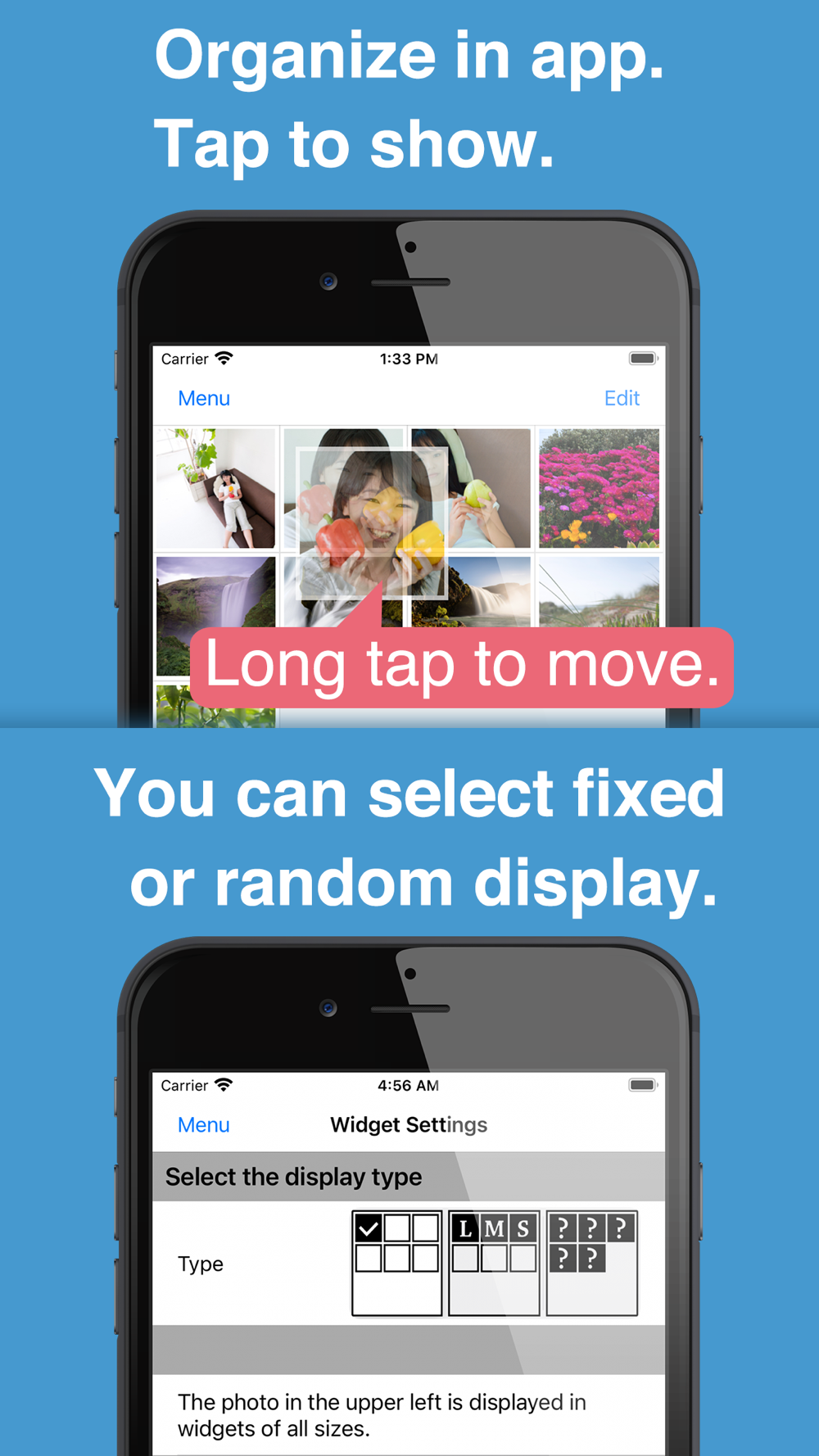 Photo widget for iOS 8 and later.