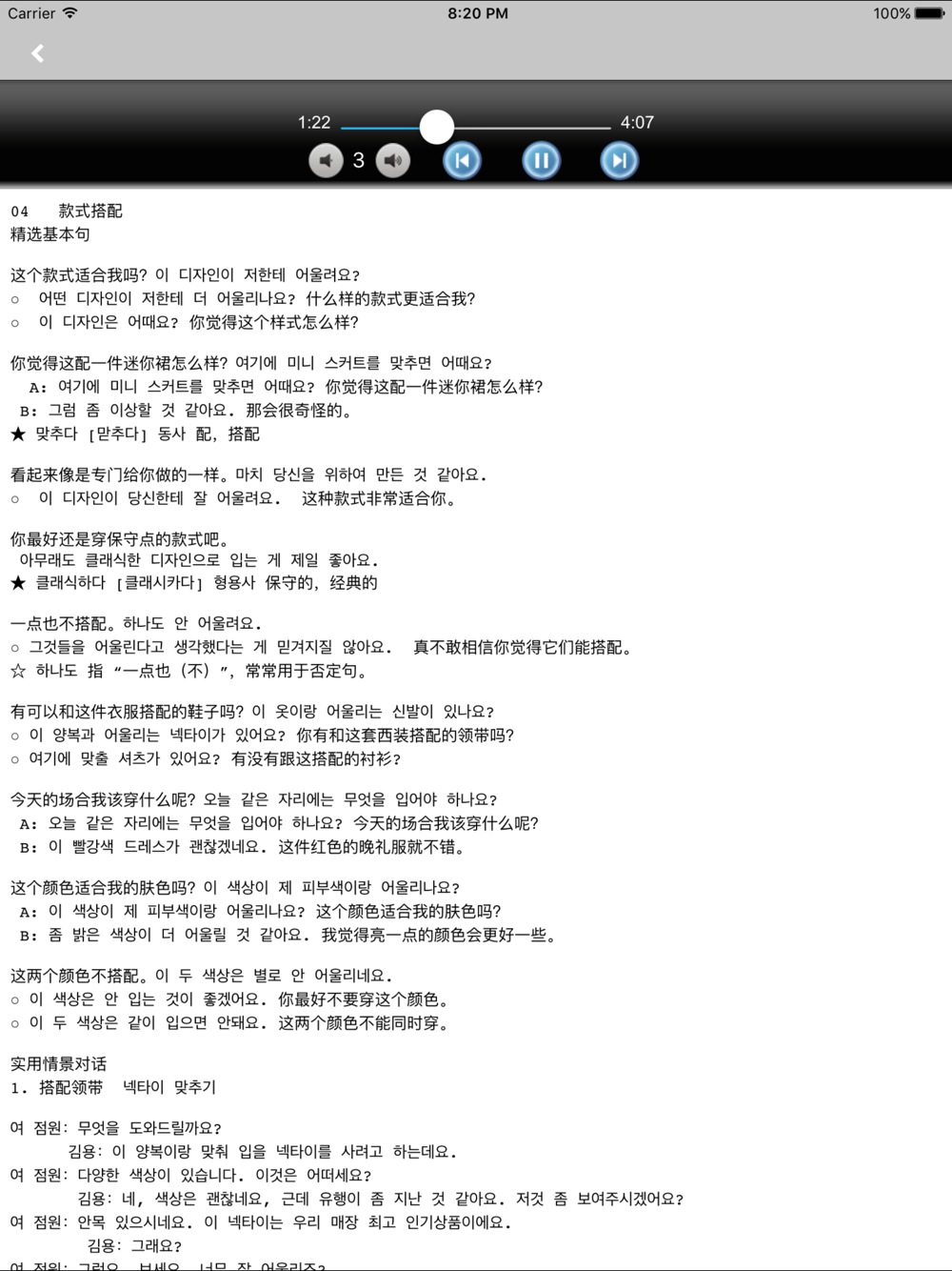 - 特别邀请韩国资深外教和汉语老师为每个句子进行中韩文对照朗读配音。只要戴上耳机,用耳朵也能学好韩语。