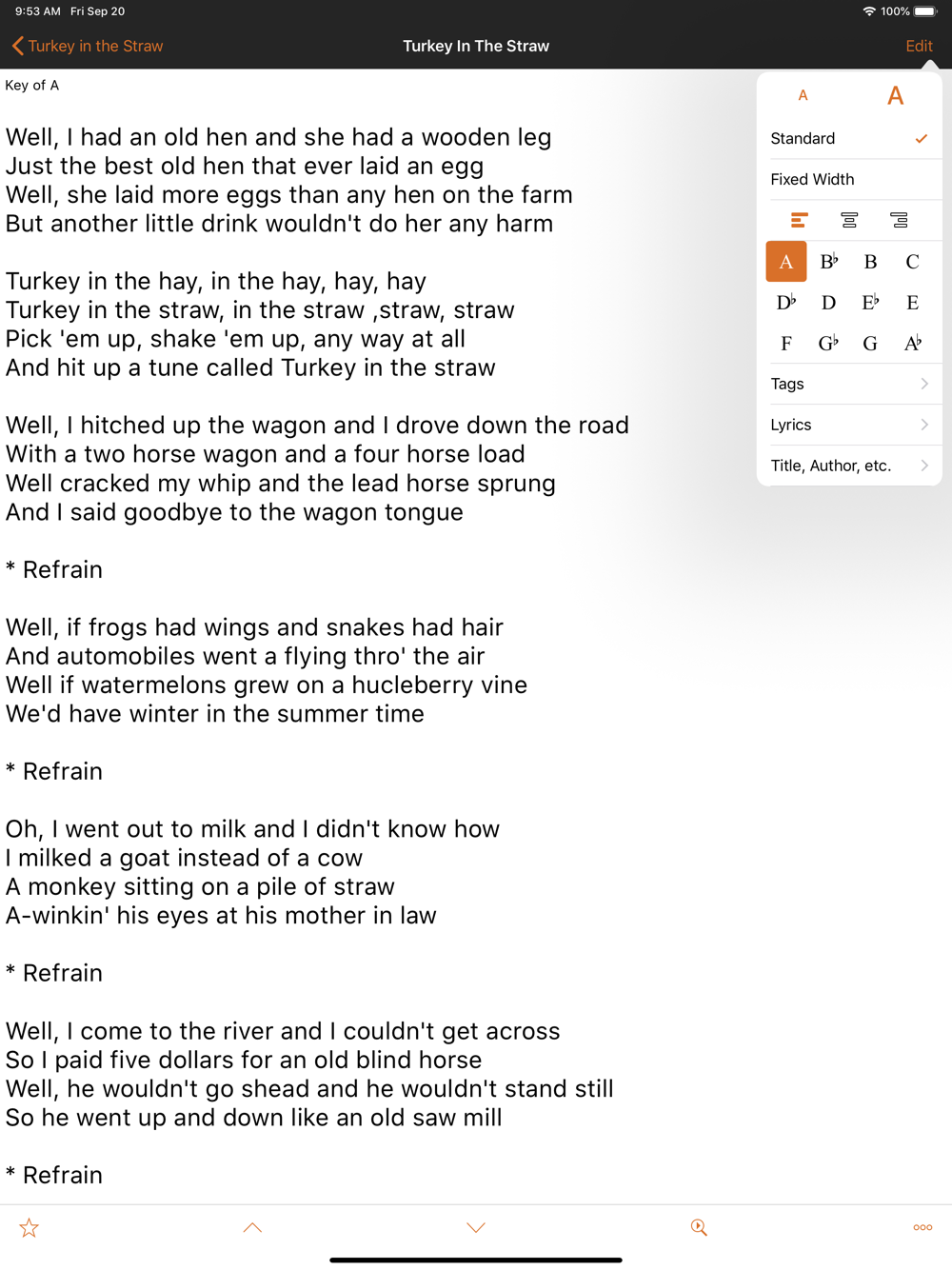 Bluegrass Guru is a song fakebook you have with you anywhere. When it’s your turn at the jam, glance your library for a song to play. At a festival, quickly search for songs that you can practice later. The whole app is specialized for bluegrass musicians and enthusiasts so you won’t be inundated with a bunch of songs and lyrics you don’t care about.