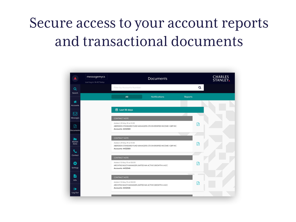 The “MyCS” app allows clients of Charles Stanley who are registered for online account viewing, to access their accounts through their iPhone or iPad's.