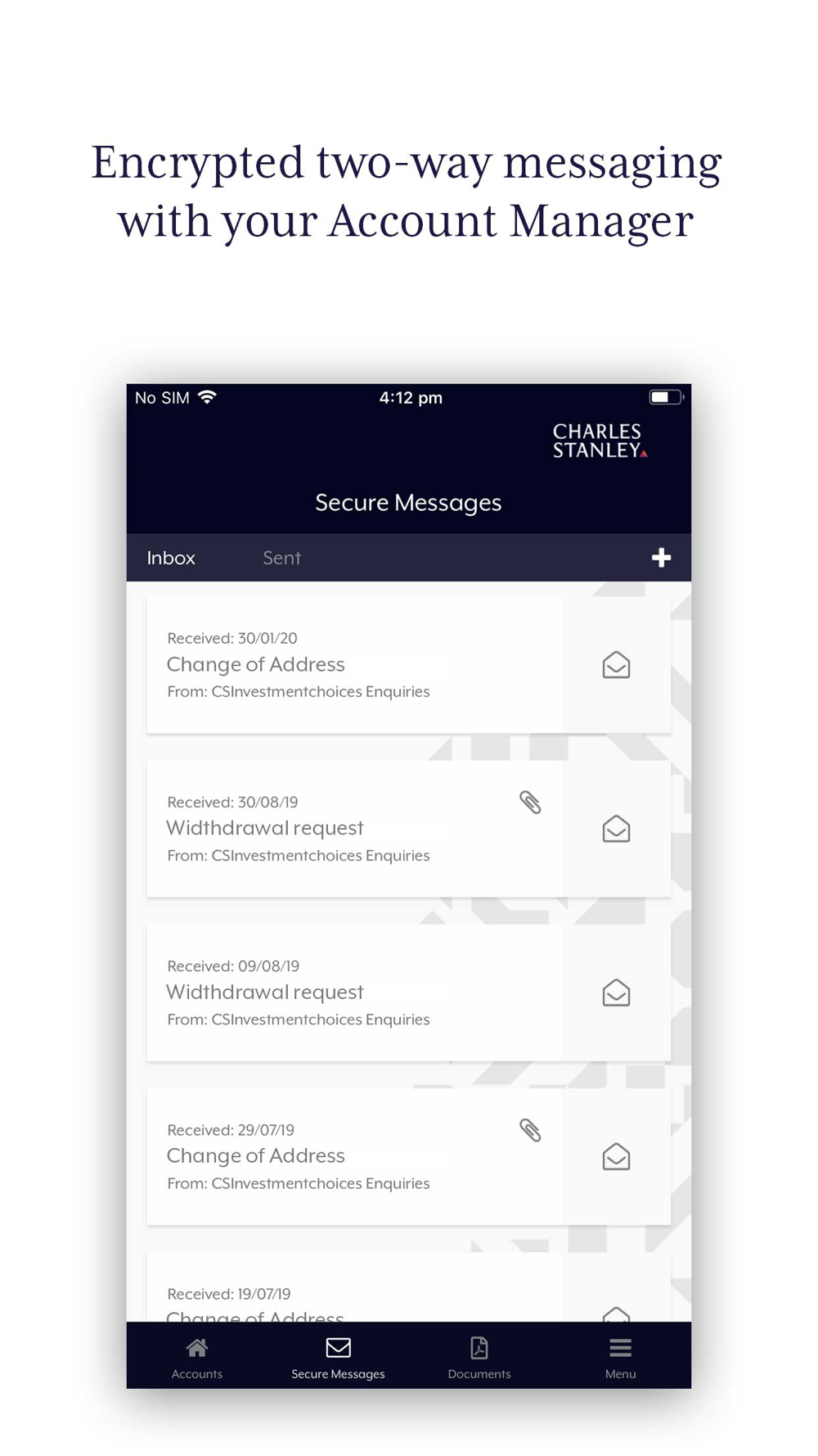 • Secure two-way messaging directly with your Investment Manager