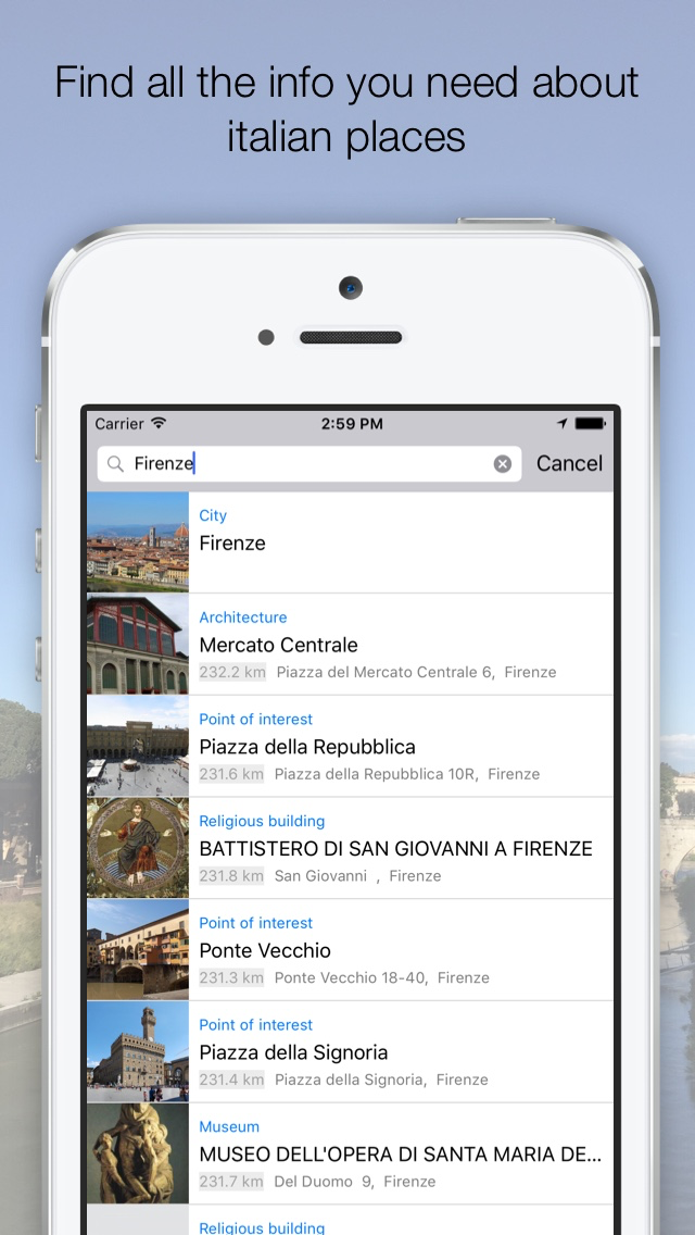 - Explore destinations in the planning stages, search for favorite locations and events, booking for restaurants and hotels, know the shops in the center or in the surrounding areas;