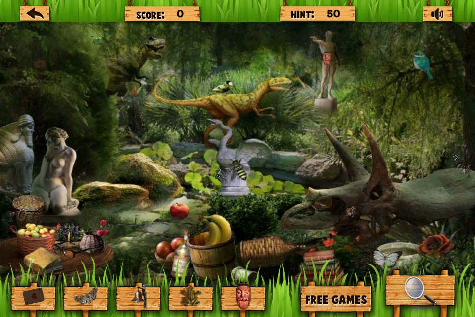 Hidden Objects In The Dino Hunter in Museum. Dino hunter in Forest.