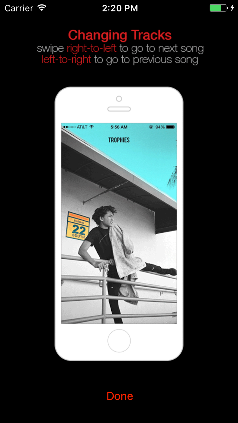 Swipe left-right to scroll through songs, swipe up to reveal playlist, double tap to play-pause, and much more!