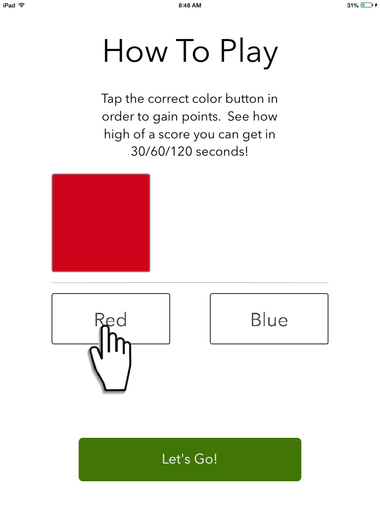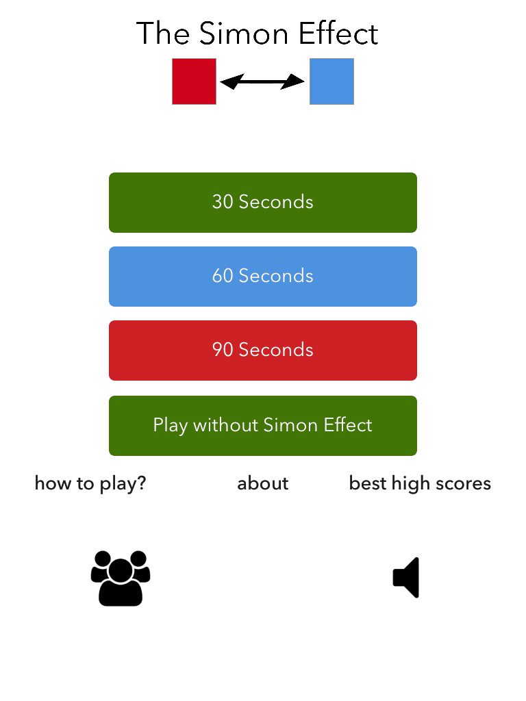 The Simon Effect game may seem simple at first: a colored box appears and you just tap the button that has the same name as the color of the box. But here’s the thing: sometimes the box appears right above the correct button and sometimes it appears above the incorrect button. It doesn’t sound too confusing but surprisingly it is!