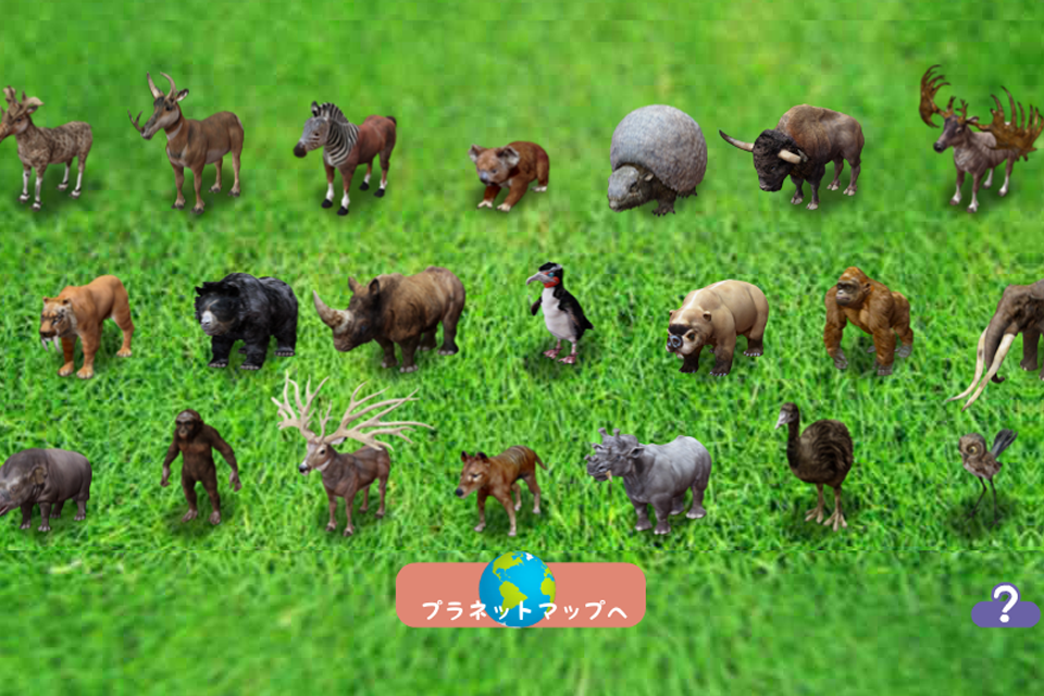 「ぜつめつどうぶつえん」は過去の地球を旅し、絶滅した動物をつかまえて動物園を作ることが目的の、新感覚の図鑑アプリです。