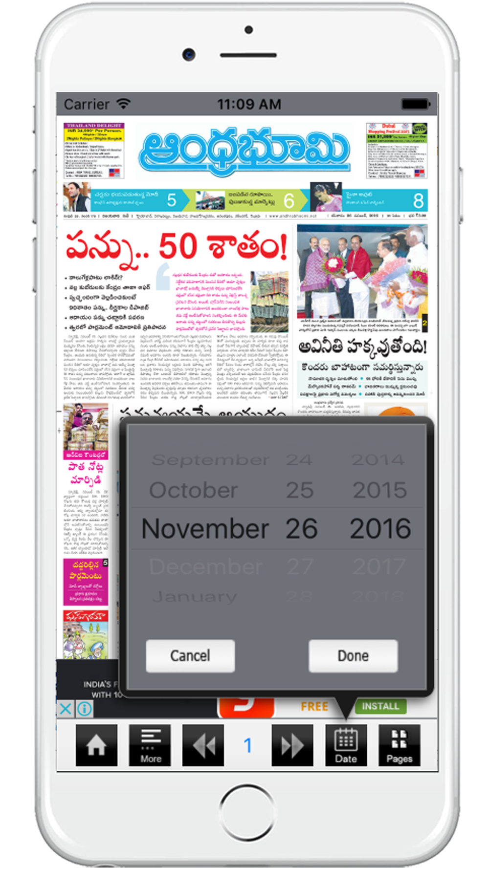 AndhraBhoomi ePaper iPhone App provides you an opportunity to avail the newspaper’s complete insight and articles throughout the world. This app brings the news paper and its content one step closer to the users enabling them to personalize and read it from anywhere for free and we can read in landscape mode also.