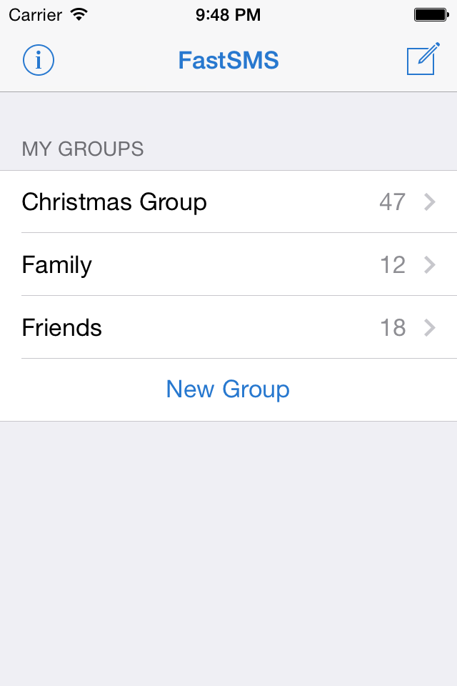 FastSMS is a messaging application to send bulk messages to a group of contacts. Now it's so easy to send bulk messages on Christmas or family reunions with FastSMS! Create your groups and messages and send them with only 3 touch.