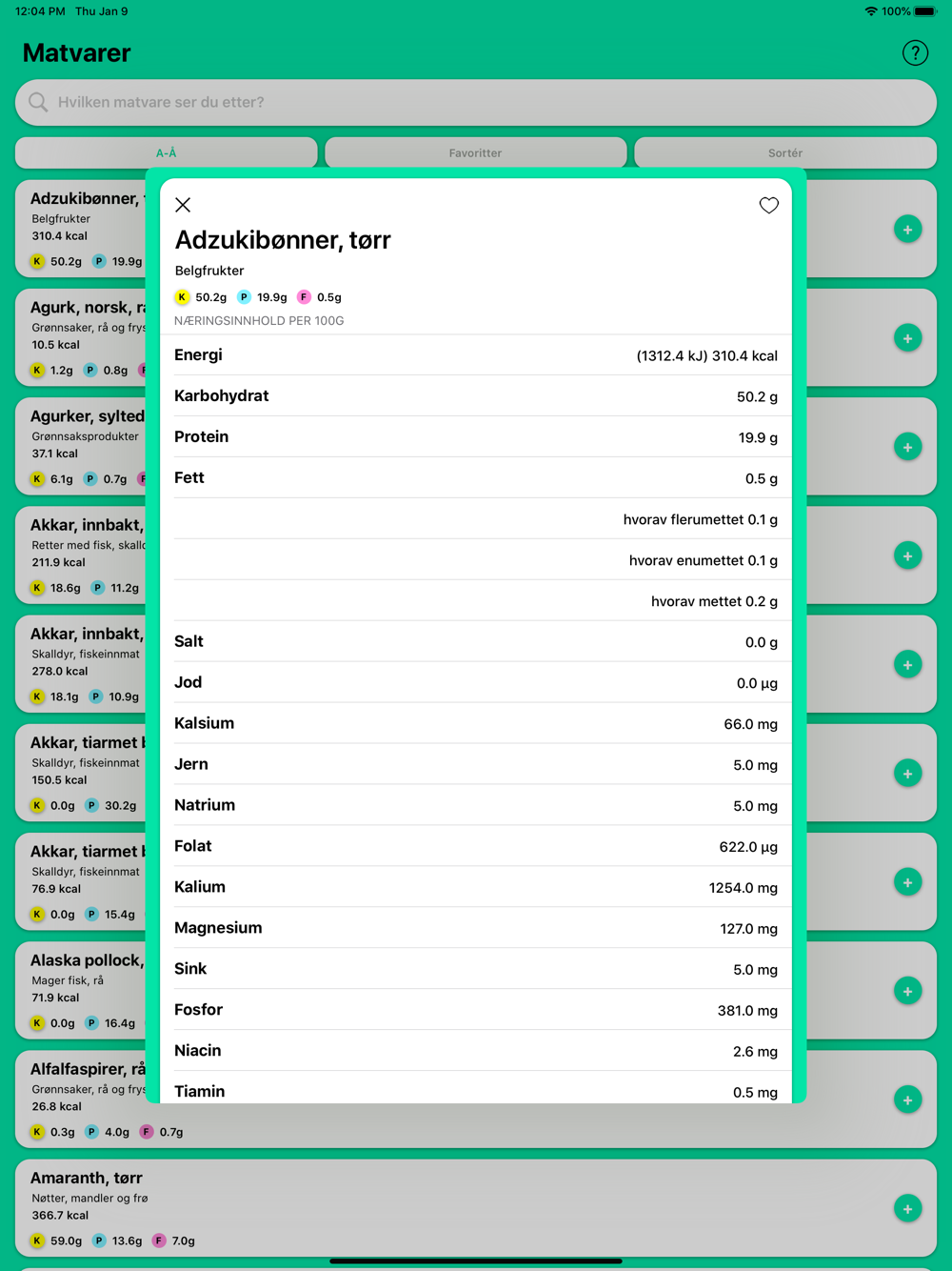Appen er utviklet av Ivan Le Hjelmeland og bygger på Matvaretabellen 2017. Mattilsynet, Helsedirektoratet og Universitetet i Oslo står bak matvaretabellen. www.matvaretabellen.no.