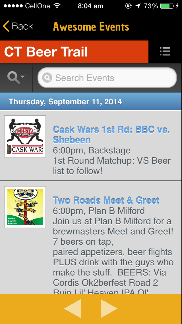 Beer drinkers seeking a locally made brew will get help from a new organization of state entrepreneurs, the Connecticut Brewers Guild. Typically small and independently owned, craft brewers are a fast growing segment of the beer industry. This non-profit organization is dedicated to promoting the beer culture in Connecticut through creative brews, festivals and fantastic events through out the year. Keep this app handy at all times to stay on pace with all the new brews, specials, events and brewery/brewpub openings as they happen!