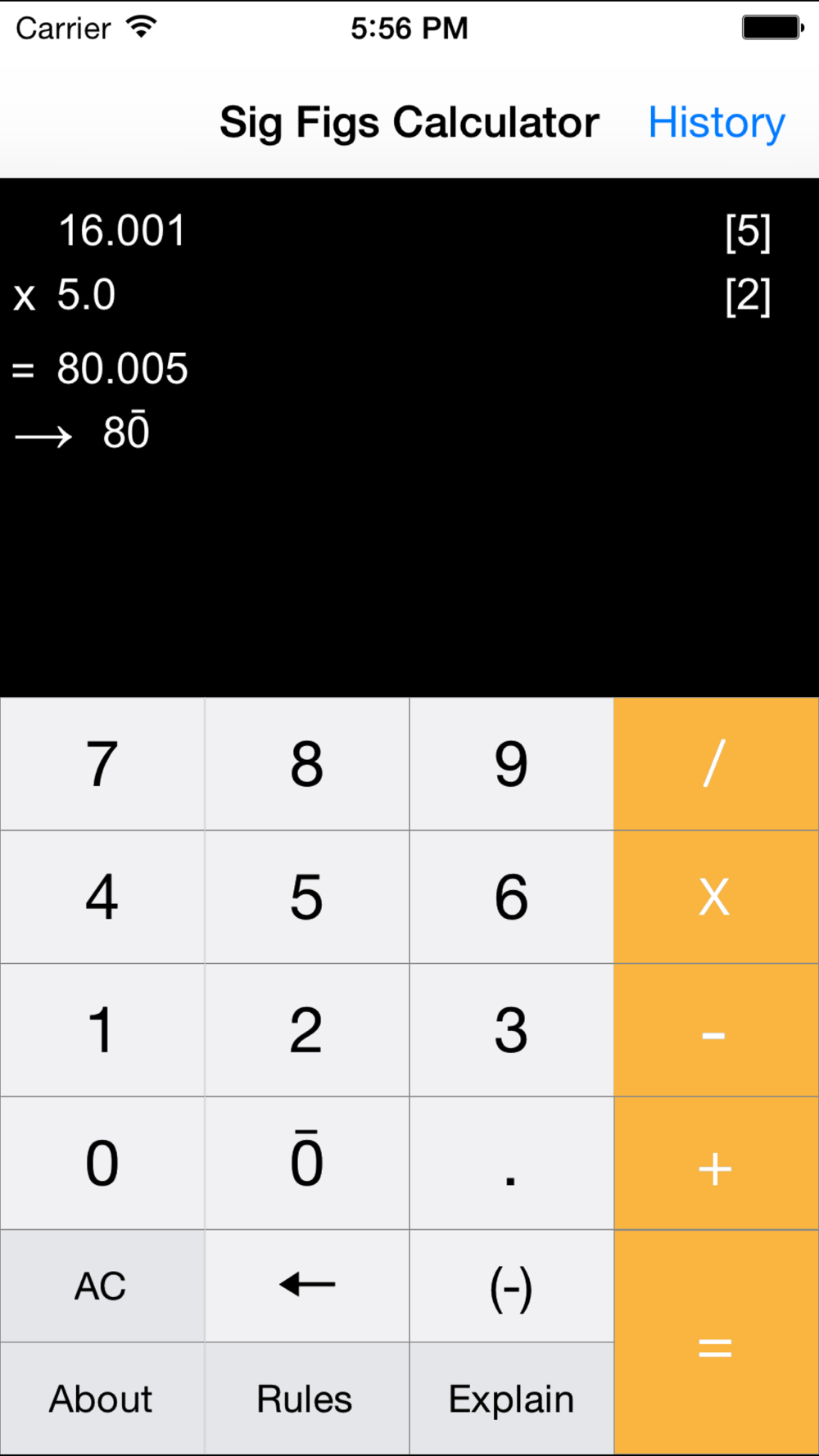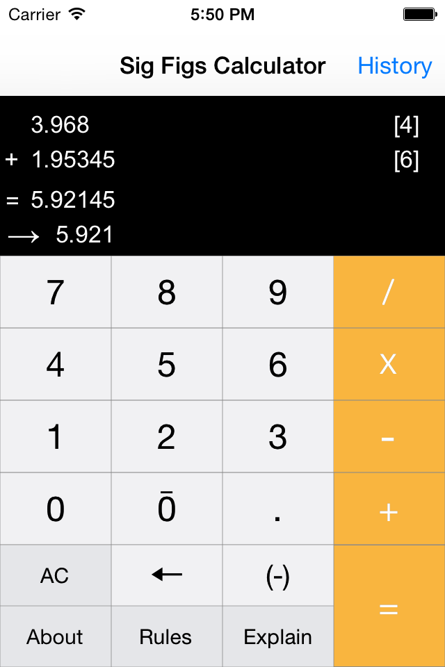 - Fully functioning SIGNIFICANT FIGURES INTELLIGENT calculator