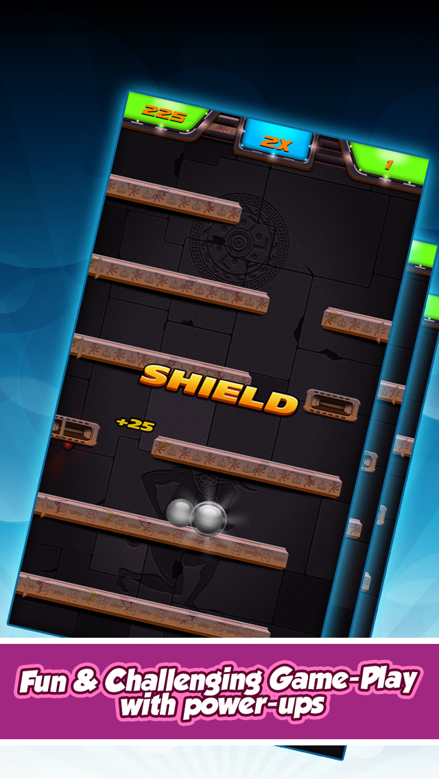 Tilt the ball to control it and try to avoid getting destroyed at the top. You can collect several power-ups on your way down, that help go deeper and live longer. To add more strength to your ball just visit the in-game store that allows you to buy superpowers. You need coins for the in-game store. You can get coins from playing and getting high-scores, by sharing this app with your friends or with in-app purchase.