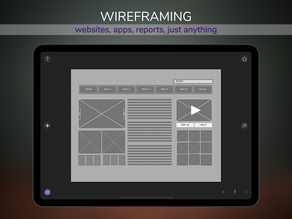 Design wireframes to describe layouts, the arrangement of the content, the logic of the menus...anything.