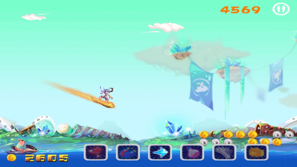 Water surfing game, this game offers completely free, screen size support the main phone and tablet, how can the blue waters less you, you can speed flying above, whether you are using a spare tire or a surfboard or motorboat, the speed will be faster countless coins into your pocket, the speed of gold is your pursuit, whether in the air or in the water or underwater.