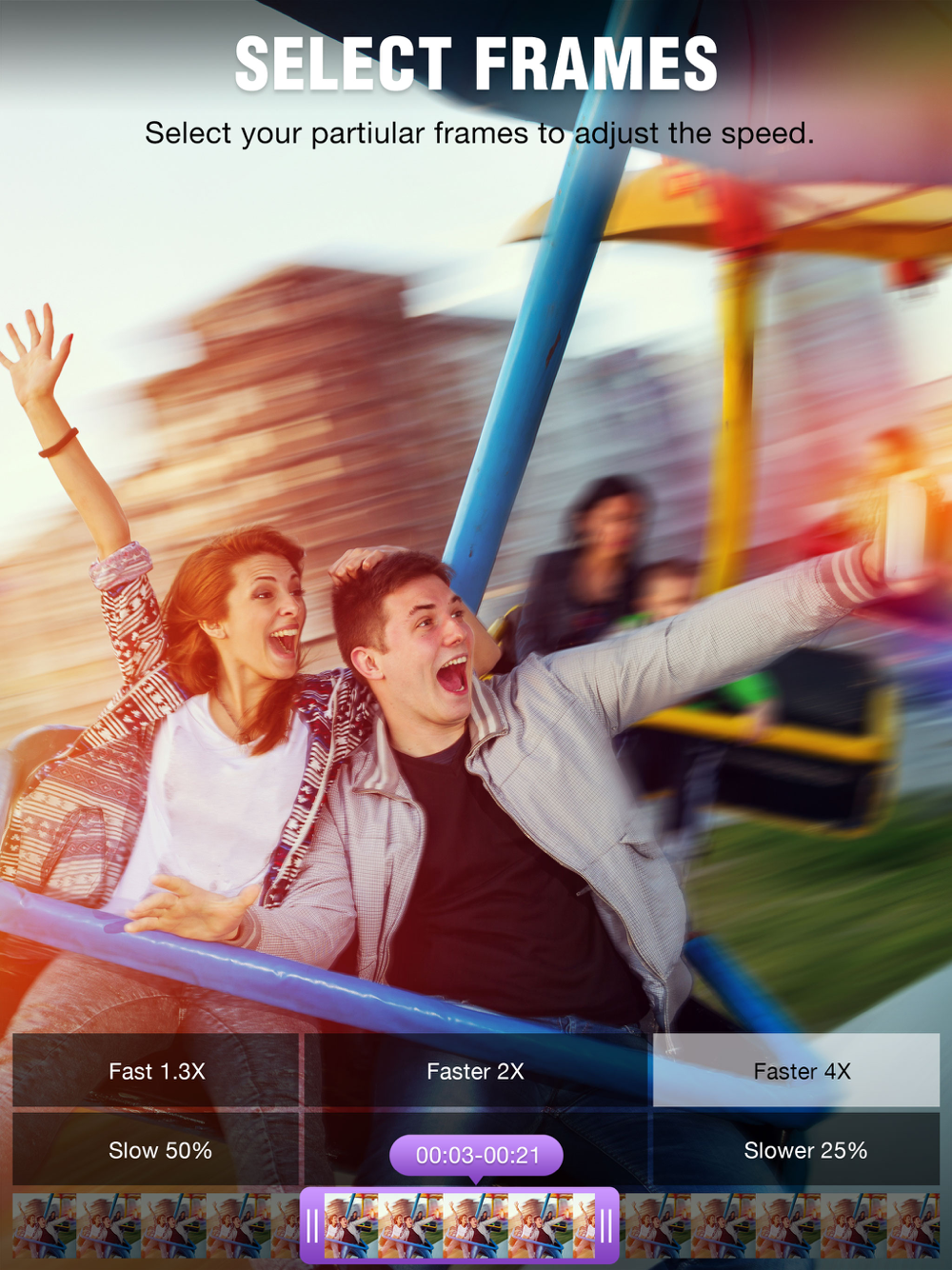ClipSpeed, increase or decrease video speed easily on your device. If you are looking for an app to make your video in slow motion or to make your video in fast motion, then download our ClipSpeed app to your iOS device. In this app you can also add background audio to your video clip. This app is exclusively designed to do only two task- to slow video and to fasten your video.
