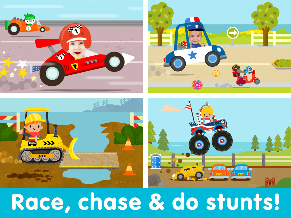 Drive fire trucks, race cars, construction vehicles and monster trucks! Add your toddlers face - they love starring in all the car puzzles and racing games. "We love this! You build up the trucks with puzzles, then drive them." App Store Review