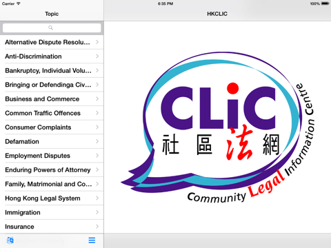 Developed by the Law and Technology Centre of The University of Hong Kong, the ìCommunity Legal Information Centreî (CLIC) is a free bilingual mobile app specifically catered for people with no legal background.