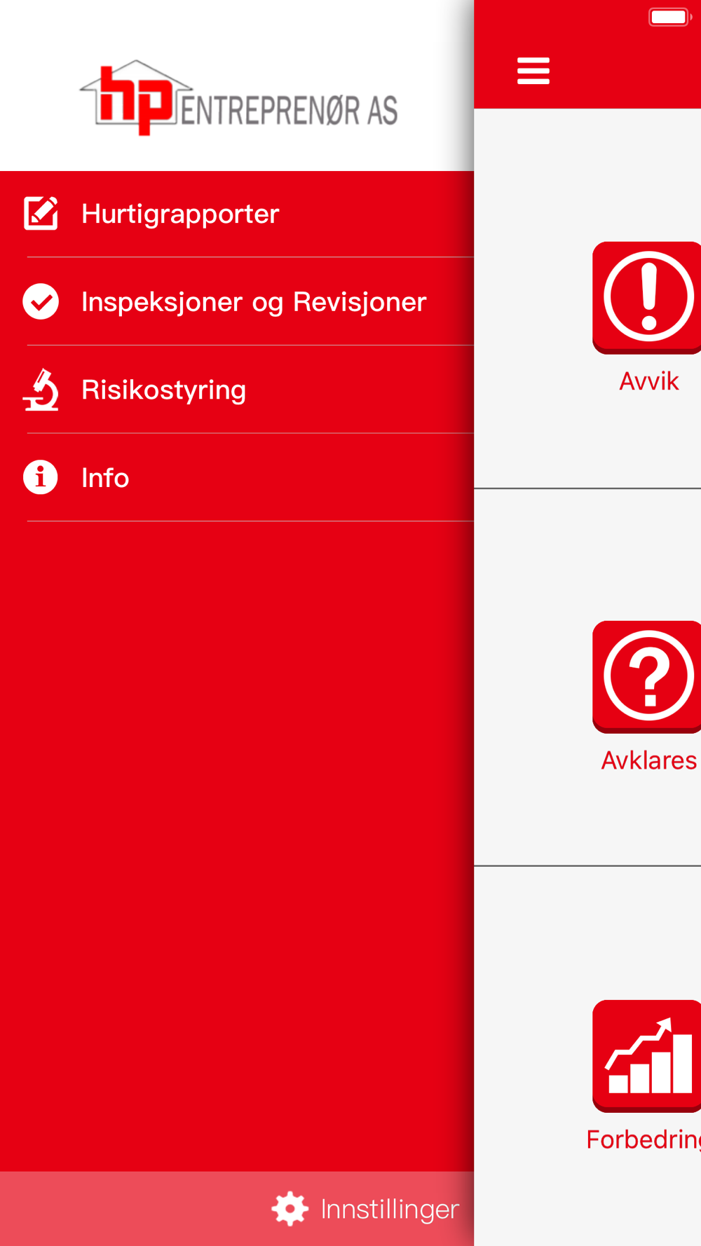 Dette er HP Entreprenør AS sin app til bruk ved innrapportering av HMS-hendelser og kvalitetsrelaterte saker. Appen inneholder systematikk for å sende melding om avvik, observasjoner, nestenulykker, ulykker og forbedringsforslag, samt en egen modul for dokumentasjon av gjennomførte sikker-jobb analyser / risikoanalyser og en annen for vernerunder og sikkerhetserklæringer.