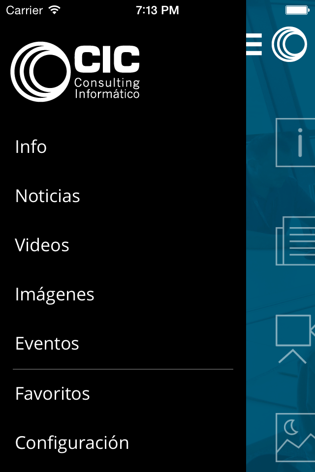 Nuestra app muestra las últimas noticias de CIC, canal de vídeos, galería fotográfica, eventos y también permite la integración con redes sociales para compartir la información.