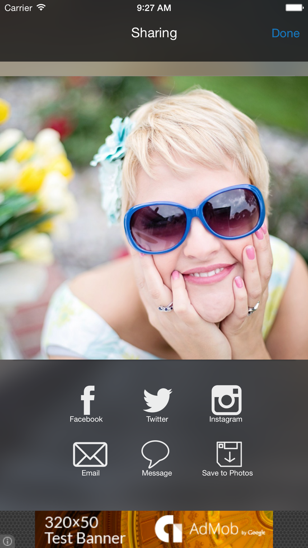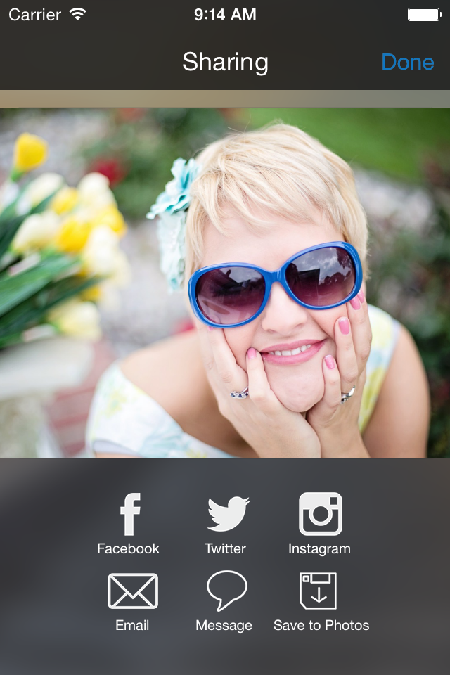 • Share Photos with Friends (Twitter, Facebook, Instagram, Email, Message, etc.)