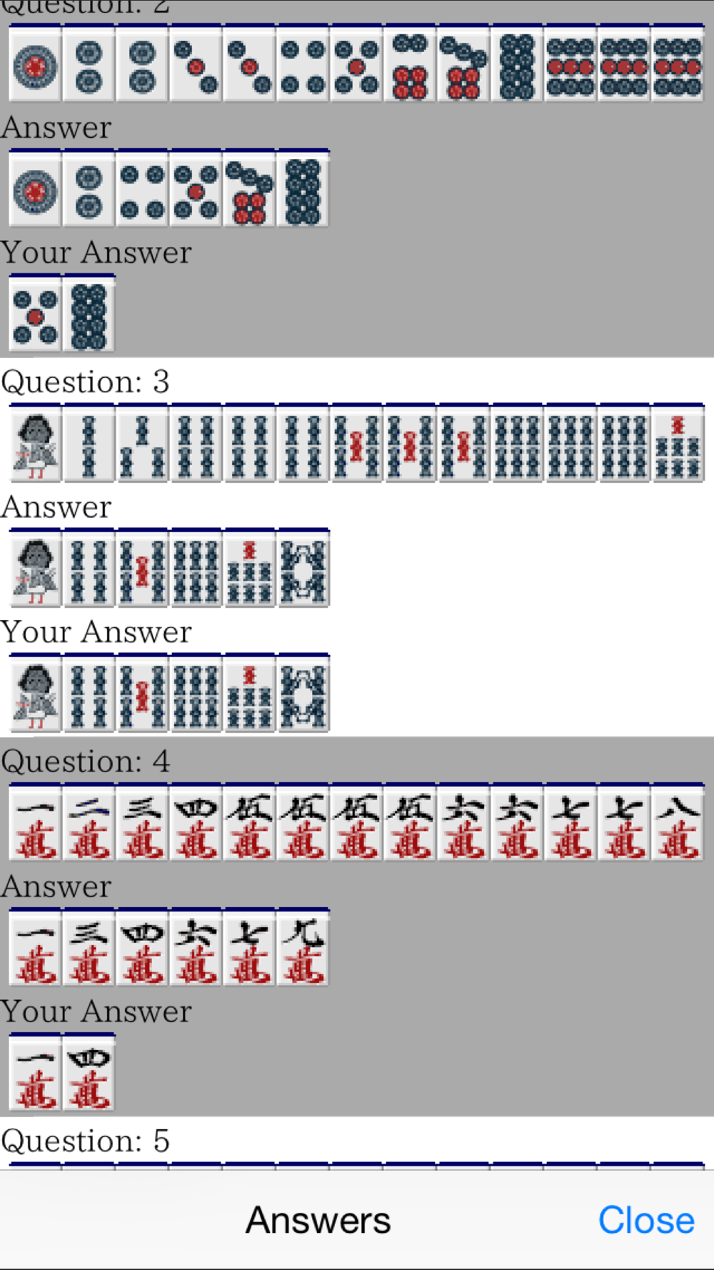 There will be five questions for each game.