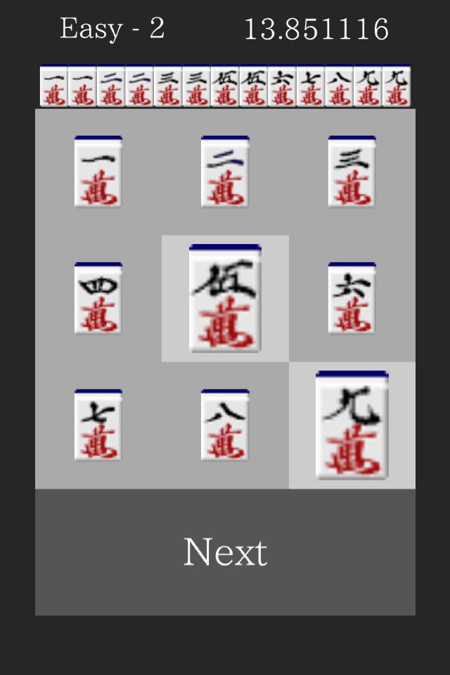 This game is a timed challenge to see how quickly you can identify the correct MahJong tile to complete a Chin'itsu yaku.