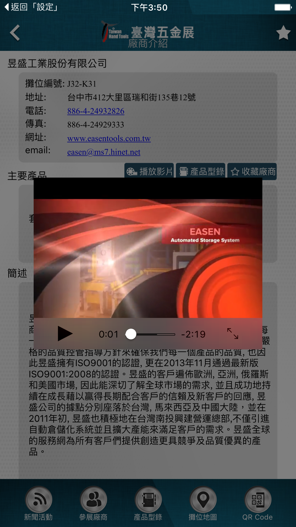 本APP在活動期間提供大會活動訊息及相關廠商資訊及電子型錄功能、攤位地圖、展場相關交通住宿資資訊,APP內建QR Code功能可以直接掃描,開啟廠商相關資訊,並可直接收藏相關活動及廠商資訊,幫助買家收集資採購資訊。